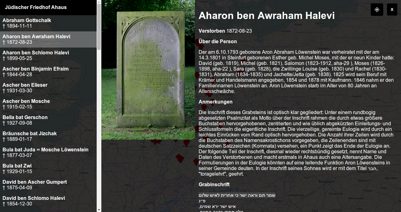 | Studentenprojekte für die Vorlesung XML-Technologien SoSe 14Im Rahmen der Vorlesung XML-Technologien (Web Data and Interoperability) im Sommersemester 2014 bestand die Aufgabe der Teilnehmer darin, selbständig ein Softwareprojekt durchzuführen. Neben den technologischen Vorgaben in Form von verschiedenen zu verwenden Techniken aus dem Bereich der XML-Technologien sollte auch ein Datensatz aus dem Bereich Open Cultural Data verwendet werden. Hierzu sollten die Teilnemer einen der Datensätze wählen, welcher für den Coding Da V1nc1 Kultur-Hackkathon veröffentlicht wurde. Ausgehend von diesem wurde ein Use-Case gewählt und eine Applikation implementiert. Im Folgenden sind die einzelnen Projekte aufgeführt. Zwei Welten – Berlin damals und heute | Jüdische Friedhöfe |  | Die für Smartphones und Desktopgeräte optimierte Webanwendung „Zwei Welten – Berlin damals und heute“ (http://zwei-welten.meier-benjamin.de) verwendet automatisch extrahierte und mit Bildern aufbereitete Informationen aus der freien Enzyklopädie Wikipedia, um für Besucher das Erlebnis von historischen Stadtszenen informativer zu gestalten.Hierfür nutzt das Projekt als Datenquelle historische Stadtansichten von Berlin, die im Zuge des Coding da Vinci Kultur-Hackathon unter dem Titel „Schichten der Geschichte“ vom Stadtmuseum Berlin zur Verfügung gestellt wurden.Zusätzlich bieten eine interaktive OpenStreetMap-Karte mit Markern für dargestellte Gebäude, sowie qualitativ hochwertige Bilder aus Panoramio und ausgewählten Flickr-Gruppen, ein mehrdimensionales Erlebnis der heutigen Umgebung, wodurch die Verbindung zum historischen Berlin ermöglicht wird. |  | Das Projekt ist ein Webdienst, der jüdische Friedhöfe aus einer Datenbank kategorisiert und Informationen zu Gräbern und Verstorbenen anzeigt. Es ist insbesondere durch die freundliche Unterstützung des Steinheim-Instituts, die die Daten in verschiedenen XML-Formaten zur Verfügung stellen, möglich gemacht worden.Der Benutzer kann durch alle 135 Friedhöfe navigieren und sich Informationen wie z.B. den Standpunkt auf der OpenStreetMap-Karte ansehen. Weiterhin lassen sich Informationen über jedes einzelne Grabmal abfragen, insbesondere welche Personen dort bestattet worden sind. Zu jedem Zeitpunkt werden die Informationen durch DBPedia angereichert. So werden Informationen zum Ort in dem der Friedhof gelegen ist oder berühmte Personen, die am gleichen Tag verstorben sind, angezeigt und mit der Wikipedia verlinkt. | | Botanikquiz | Interaktive Recherche zur Historie und Epigrafik jüdischer Friedhöfe |  | Mittlerweile kennt es jeder der schon einmal einen der unzähligen Quiz-Spiele für Smartphones gespielt hat. Man bekommt eine Frage und kennt keine Antwort, man rät falsch und ärgert sich, dass die Fragen zu Fachintensiv sind. Doch einige Zeit später bekommt man dieselbe Frage, und merkt auf einmal, man wisse die Antwort!Genau diesen Effekt wollen wir bei unserem Botanik-Quiz erzielen.Die Fragen basieren auf der Bildersammlung der Pflanzen des Botanischen Gartens, man sieht ein Bild einer Pflanze, muss den genauen Namen erraten und bekommt anschließend die richtige Antwort und Zusatz-Informationen zu der Pflanze eingeblendet.Aber das ist doch extrem schwer, denken Sie sich bestimmt gerade. Ja, zumindest beim ersten Mal, doch versuchen Sie sich daran und Sie werden erkennen, dass Sie auch ohne ein zielgerichtetes Auswendiglernen von Mal zu Mal besser werden! Dies ist der Sinn unseres Botanik-Quiz – lernen ohne Anstrengung.Stundenlanges Sitzen und büffeln war gestern, heute heißt es Spielen um zu lernen. Den Spielen ist ein kreatives Prozess, im Gegensatz zu Auswendiglernen, bei dem viele Gehirnbereiche aktiviert werden. Und wer weiß vielleicht ist Das Botanik-Quiz nur ein Anfang. |  | Die Applikation beschäftigt sich damit, wie Forscher und Angehörige bei der jüdischen Ahnenforschung unterstützt werden können. Mithilfe der Datenbestände des Steinhein-Instituts für deutsch-jüdische Geschichte und OpenStreetMap ist dabei eine interaktive Karte entstanden, auf der zahlreiche jüdische Friedhöfe und die dort begrabenen Persönlichkeiten durchforstet sowie vielfältige Informationen wie Todesdaten, Kurzbiografien und kommmentierte Grabinschriften abgerufen werden können.Neben lesendem Zugriff ermöglicht es die Webanwendung auch, den Informationsbestand aktiv zu erweitern. Zum einem können Angehörige oder anderweitig informierte Nutzer Freitextkommentare zu Grabseiten hinzufügen, um weitere Details über die dort begrabenen Personen beizutragen. Zum anderen ist es möglich, detaillierte Geodaten zu einem Grab hochzuladen, sodass es in Zukunft auf dem Friedhof leichter aufzufinden ist. | | Alte Gebäude am Nutzerstandort | TierstimmenQuiz |  | Dieses Projekt verwendet den Datensatz „Gisela Dutschmann, Berlinische Galerie“, der im Rahmen des Cod1ng Da V1nc1 Kultur-Hackaton von der Berlinischen Galerie zur Verfügung gestellt wurde. Der Datensatz enthält alte Photographien von Ost-Berlin auf denen überwiegend architektonisch interessante Bauwerke zu sehen sind.Im Rahmen dieses Projektes ist eine Android-Anwendung in Kombination mit einem Server entstanden, die einen Benutzer und dessen Standord erfasst. Befindet sich der Benutzer an einer Position, von der er diese Bauwerke sehen oder leicht erreichen kann, wird er darüber Informiert. Die Android-Anwendung lädt sich dann die passenden Bilder vom Server und zeigt Sie dem Benutzer in einem Pop-Up an. Ist der Benutzer an diesem Bauwerk oder an Hintergrundinformationen interessiert, kann er eine Detailansicht öffnen. Diese stellt erweiterte Informationen zu dem Gebäude, der Umgebung und den Architekten dar. |  | Das TierstimmenQuiz wird vom Benutzer im Browser gespielt. Ihm werden nacheinander 10 Fragen gestellt, die er zu beantworten hat. Zu Beginn jeder Frage wird eine Tierstimme abgespielt. Der Benutzer muss diese Tierstimme einem von vier vorgeschlagenen Tieren 