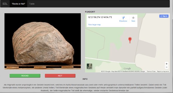 Fahrplan … [...Weiterlesen/more...]Im Rahmen der Vorlesung XML-Technologien (Web Data and Interoperability) im Sommersemester 2015 bestand die Aufgabe der Teilnehmer darin, selbständig ein Softwareprojekt durchzuführen. Neben den technologischen Vorgaben in Form von verschiedenen zu verwenden Techniken aus dem Bereich der XML-Technologien sollte auch ein Datensatz aus dem Bereich Open Cultural Data verwendet werden. Hierzu sollten die Teilnemer einen der Datensätze wählen, welcher für den Coding Da V1nc1 Kultur-Hackkathon veröffentlicht wurde. Ausgehend von diesem wurde ein Use-Case gewählt und eine Applikation implementiert. Im Folgenden sind die einzelnen Projekte aufgeführt. Bilderquiz | Steine der Leidenschaft |  | Unsere Projektidee ist ein interaktives Bilderquiz, bei dem ein Gemälde und eine Frage sowie vier Antworten dazu angezeigt werden. Die Frage bezieht sich zum Beispiel auf den Künstler, die Epoche, die eingesetzte Technik oder ein ähnliches Thema, das zu dem jeweiligen Gemälde gestellt werden kann. Bei der Auswahl einer Antwort werden anschließend alle falschen Antwortmöglichkeiten rot und die richtige grün eingefärbt. Außerdem werden weitere Zusatzinformationen über den Künstler angezeigt. Die nächste Frage kann beantwortet werden, wenn man auf den entsprechenden Button klickt. GitHubLink: https://github.com/markwitz/xml_Coding_Da_Vinci |  | Bei der Projektarbeit Steine der Leidenschaft handelt es sich um Bewertungssystem von Steinen. Der Nutzer hat die Möglichkeit sie positiv oder negativ zu bewerten, dabei werden ihm |